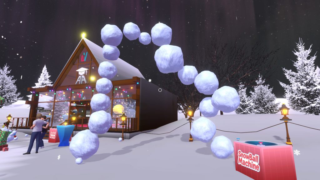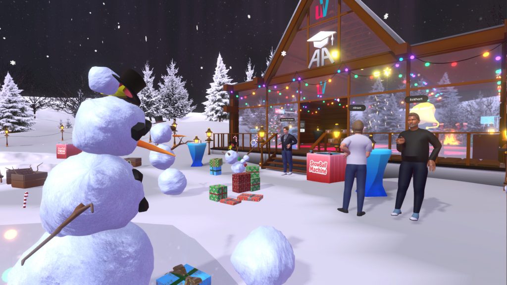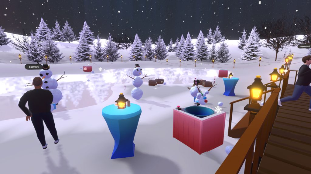 Wir besuchen erneut den Raum XRmas in Anywhere Academy zum informellen Austausch, Features ausprobieren, Schneemannbau Wettbewerb, Schneeballschlacht und mehr.